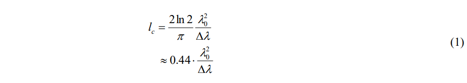 The axial and lateral resolutions of OCT are decoupled from one another; the former being an equivalent to the coherence length of the light source and the latter being a function of the optics. The coherence length of a source and hence the axial resolution of OCT is defined as,
