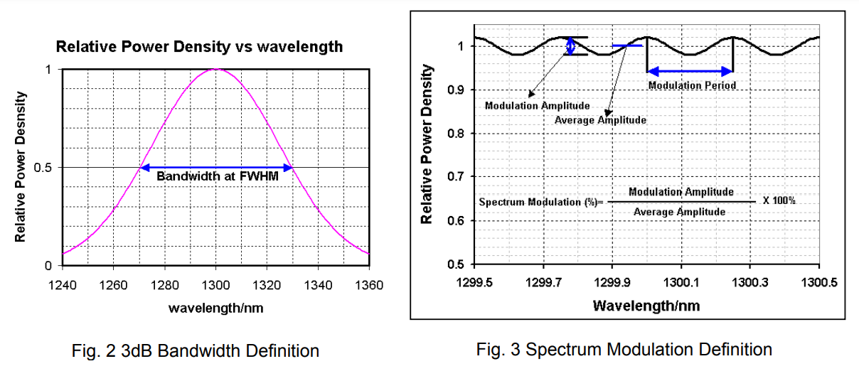 (1) 3dB Bandwidth (l3dB in unit of nm): defined as Full Width at Half Maximum (FWHM) of the ASE